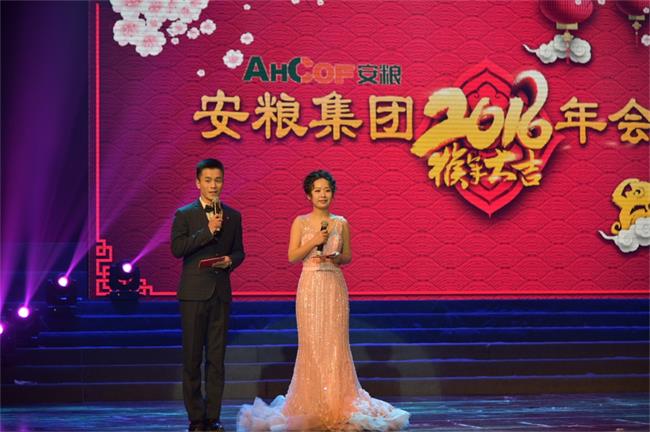 春溢安糧喜滿懷,金猴獻(xiàn)瑞報(bào)春來。2016年1月27日下午,安糧集團(tuán)2016年年會在解放軍電子工程學(xué)院禮堂盛大舉行,國貿(mào)集團(tuán)黨委副書記、總經(jīng)理包祥華、副總經(jīng)理、總會計(jì)師程保銀、總經(jīng)理助理呂蓓、安糧集團(tuán)、安糧控股各級領(lǐng)導(dǎo)與來自安糧系統(tǒng)各單位的共900余名同事歡聚一堂,共迎新年。