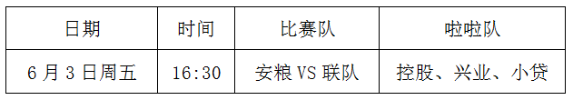 第三輪比賽將于下周五(6月3日)繼續(xù)打響,屆時安糧集團(tuán)足球隊將迎來 “國貿(mào)聯(lián)隊”的挑戰(zhàn),歡迎集團(tuán)各位同事前往現(xiàn)場加油助威!
