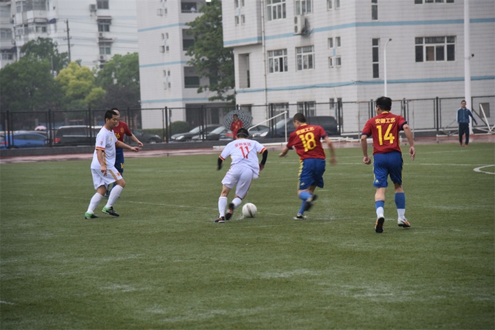5月20日下午,一場大雨突襲合肥。然而,這并沒有影響國貿(mào)集團(tuán)2016“安天利信杯”足球賽第二輪的精彩上演,經(jīng)過激烈的雨中角逐,安糧集團(tuán)足球隊以4:1的比分完勝安徽工藝代表隊。