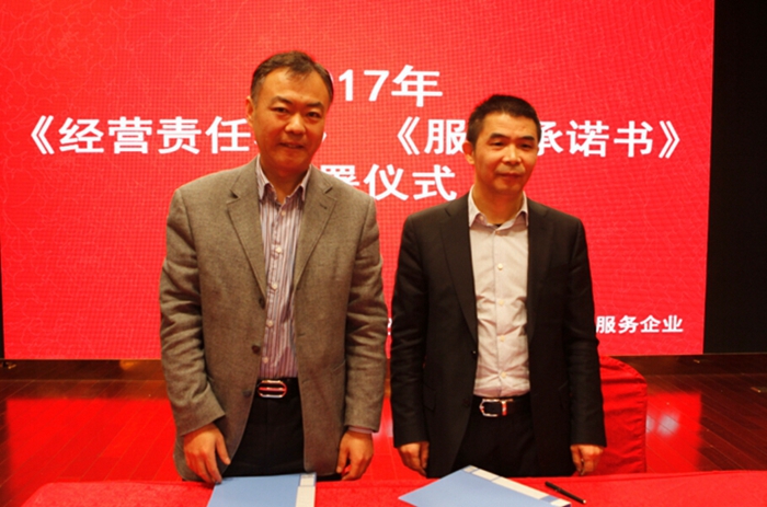 隨后,公司領導與各業(yè)務部門及金財匯頂子公司簽署了《2017年度經(jīng)營目標責任書》,與各中后臺及創(chuàng)新業(yè)務部門簽署了《2017年度服務承諾書》。