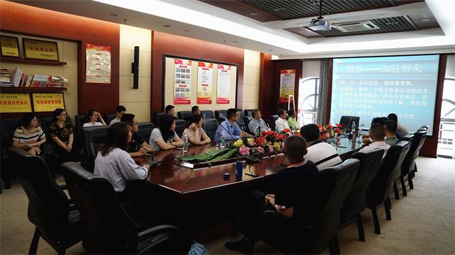 參觀結(jié)束后,實業(yè)黨支部特邀南昌市委黨?;A(chǔ)理論教研部副主任趙坤教授為參加活動的全體黨員在紀念館黨員活動室就地上了一堂主題為“重溫紅色經(jīng)典,深入學習四個意識、四個自信、兩個維護核心精神”的現(xiàn)場黨課,既詳實又生動地介紹了江西這片紅色土地上的革命歷史,從黨史的視角梳理了“四個意識”、“四個自信”、“兩個維護”的重要性和迫切性,進一步領(lǐng)會了習總書記關(guān)于推進紅色基因傳承的要求。