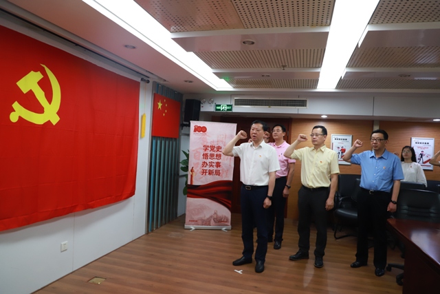 (曹訓(xùn)立帶領(lǐng)安糧集團(tuán)黨委班子、集團(tuán)直屬黨支部、安糧控股黨支部重溫入黨誓詞)