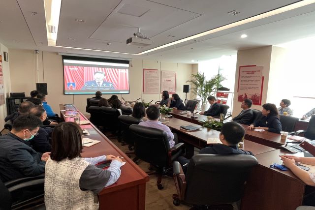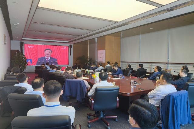 當天上午,在安糧中心3208會議室內(nèi),安糧集團黨委書記曹訓立等黨委委員,團委委員,集團、控股支部黨員,部門負責人以及子公司黨員領(lǐng)導(dǎo)干部、統(tǒng)戰(zhàn)人員代表集中收看了開幕直播盛況,同志們聚精會神地聽、專心致志地記,仿佛置身于大會現(xiàn)場。