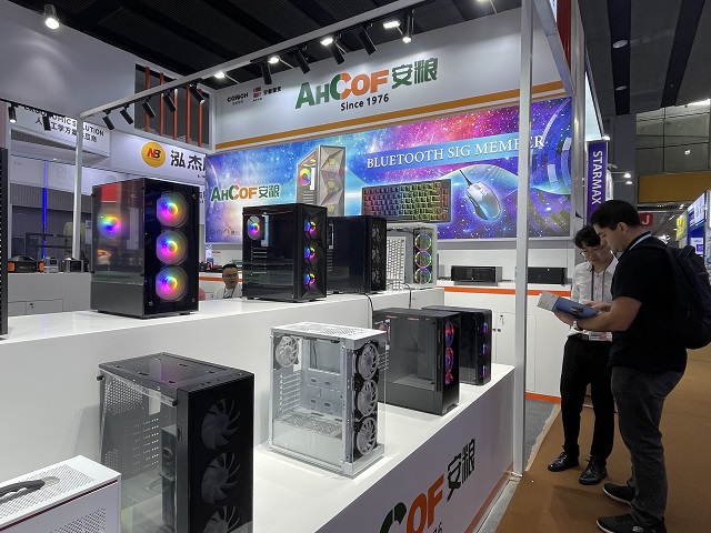 南方一部在本屆廣交會(huì)一期主要參展游戲電腦機(jī)箱產(chǎn)品,從入門(mén)級(jí)到高端游戲機(jī)箱齊全。部門(mén)在營(yíng)銷(xiāo)展示上采用一系列新穎的形式,展臺(tái)的主通道采用目前比較流行的魚(yú)缸游戲機(jī)箱作為看點(diǎn),用可藍(lán)牙連接手機(jī)和電腦的高端游戲機(jī)箱吸引客戶(hù)。為了突出參展效果,所有游戲機(jī)箱都裝上了RGB變色風(fēng)扇。多樣化的變色風(fēng)扇與南方二部的機(jī)械鍵盤(pán)吸引了大量客戶(hù)駐足觀看。消費(fèi)電子展6個(gè)攤位,突出游戲類(lèi)產(chǎn)品的裝修風(fēng)格,搭配大氣的門(mén)頭、顯眼的海報(bào)燈箱,使客戶(hù)在進(jìn)館時(shí)只需一眼就能夠鎖定目光。
