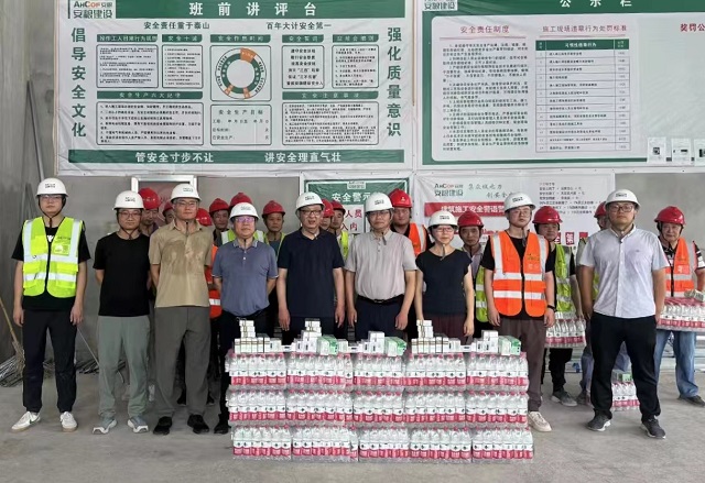 炎炎夏日,酷暑高溫,為切實做好職工夏季防暑降溫工作,用心用情關(guān)愛一線職工,8月2日,安糧集團工會開展“關(guān)愛職工,夏送清涼”活動,工會主席周洪帶隊來到安糧建設項目工地,對在高溫條件下作業(yè)的職工進行慰問,為奮戰(zhàn)在酷暑一線的工作人員送清涼、送關(guān)懷。