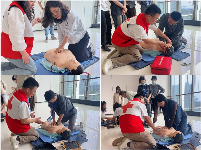 活動緊扣“學技能、強擔當、踐初心”目標,精心設(shè)置標準化急救技能培訓課程。在安徽省紅十字會專業(yè)講師的指導下,黨員同志們學習了心肺復(fù)蘇(CPR)、自動體外除顫儀(AED)操作、創(chuàng)傷止血包扎、氣道異物梗阻處理等核心急救技術(shù)。針對心梗、腦卒中早期識別及燒燙傷應(yīng)急處置等日常生活中常見的突發(fā)場景,講師也進行了專項教學。課程采用理論講解與實操演示相結(jié)合的模式,借助模擬人體設(shè)備逐項分解急救動作要領(lǐng),確保參訓黨員能夠掌握規(guī)范、科學的急救流程。
