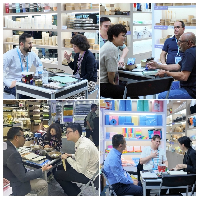 在家居展區(qū),開展首日便迎來(lái)一大波客戶咨詢。依托安糧20余年深耕一次性餐廚制品領(lǐng)域的專業(yè)積淀與行業(yè)洞察力,本次重點(diǎn)首發(fā)的紙質(zhì)水果盒、紙制刀叉餐具等創(chuàng)新產(chǎn)品,憑借獨(dú)特的差異化設(shè)計(jì)迅速成為全場(chǎng)焦點(diǎn)之一。此外,展區(qū)同步展出的紙制品、全新塑料制品、竹木制品以及無(wú)紡布制品等核心品類,全面覆蓋海外市場(chǎng)多元化采購(gòu)需求。在品質(zhì)把控層面,安糧更是對(duì)標(biāo)國(guó)際前沿標(biāo)準(zhǔn)——以展會(huì)熱門展品紙杯為例,已升級(jí)至EUDR(歐盟盡職調(diào)查法規(guī))標(biāo)準(zhǔn),完全符合歐盟進(jìn)口要求,截至目前,已與來(lái)自比利時(shí)、科威特、日本的客戶達(dá)成初步成交意向,為后續(xù)海外市場(chǎng)拓展奠定堅(jiān)實(shí)基礎(chǔ)。
